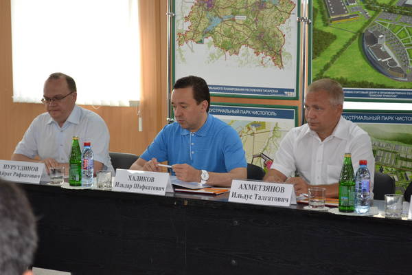 27 июня 2013 г. в Штабе строительства Индустриального парка «Чистополь» состоялось рабочее совещание с участием Главы Чистопольского муниципального района Ильдуса Ахметзянова, начальника ГКУ «Главное инвестиционно-строительное управление РТ» Рашида Нуруллина, руководства компании-резидента «Дельрус», представителей генерального подрядчика и субподрядчиков строительных организаций, представителей контролирующих строительство органов.