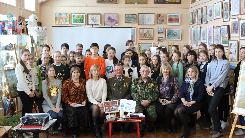 Майор Хайров Олег Хамзиевич, кавалер ордена Красной звезды и медали "За отвагу", полученных за службу в рядах Советской армии в Демократической Республике Афганистан рассказал детям, что через «жернова Афгана» прошло 650 тысяч наших ребят. Они уходили служить мальчишками, а возвращались ветеранами. Сегодня они хранители памяти о той войне, о подвигах, о славе, о погибших боевых товарищах. Несмотря ни на что, они честно исполняли свой гражданский долг, оставаясь верными присяге до конца. «Горячие точки» показали, что наши парни достойны героизма отцов и дедов, победивших фашизм в годы Великой Отечественной войны. День 15 февраля стал днем памяти не только для воинов, прошедших афганскую войну, но и для ветеранов других локальных войн — тех солдат и офицеров, кто противостоял международному терроризму в «горячих точках» ближнего и дальнего зарубежья. Можно по-разному оценивать произошедшие события, но никто и никогда не усомнится в доблести и стойкости наших воинов.
