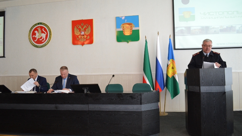 Традиционно, об оперативной обстановке доложил начальник отдела МВД России по Чистопольскому району Олег Денисов. Он отметил, что за прошедшую неделю снизилось количество заявленных преступлений по городу и району.