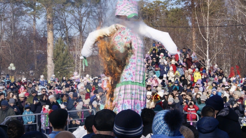 Завершились народные гуляния в Скарятинском саду сжиганием чучела Масленицы.