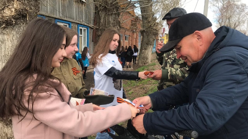 Сегодня участники акции вышли на улицы, чтобы раздать максимальное количество лент всем желающим. Жители по доброй воле прикрепляли Георгиевскую ленточку – условный символ военной славы к одежде, публично демонстрируя свое уважение к воинам, сражавшимся за Отечество, всенародную гордость за Великую Победу. А также рассказывали о ее правильном использовании, поздравляли с наступающим праздником и приглашали принять участие в «Бессмертном полке».