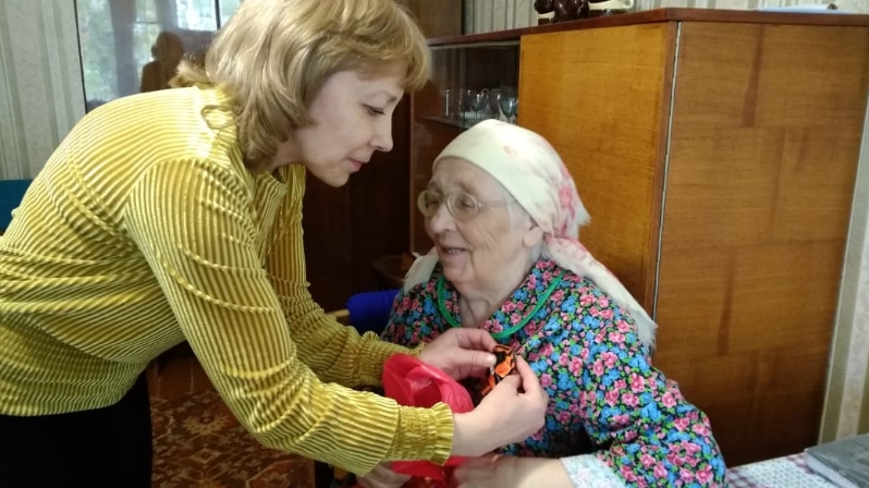 Накануне этого великого праздника 8 мая 2019 года сотрудники ГАУСО «КЦСОН «Балкыш» МТЗ и СЗ РТ в Чистопольском муниципальном районе посетили Аржанцеву К.П. - вдову участника Великой Отечественной войны, поздравили с праздником Победы и вручили георгиевскую ленту.