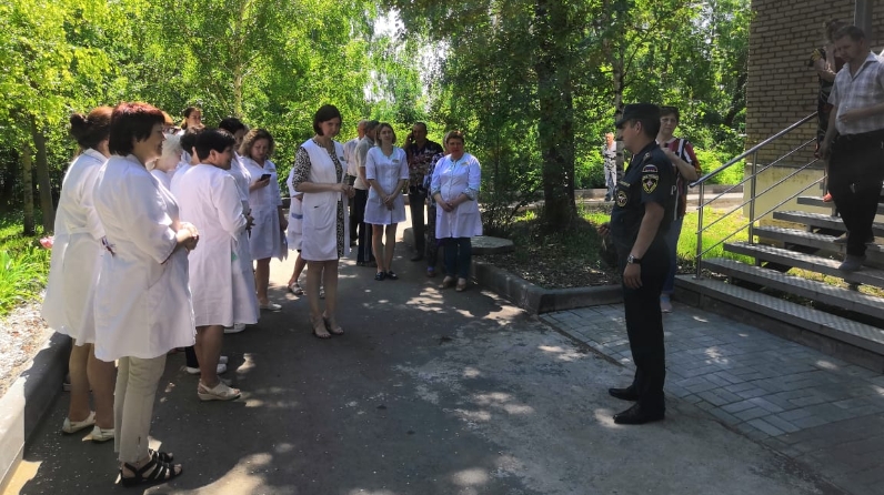 В ходе мероприятия по сигналу пожарной тревоги была проведена тренировочная эвакуация пациентов поликлиники городской больницы и работающего персонала. По результатам отработки плана эвакуации замечания не выявлены, поставленная задача администраций выполнена.