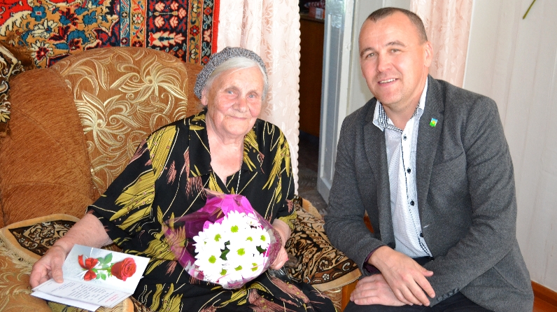 От имени главы Чистопольского муниципального района Дмитрия Иванова и от себя лично с этой прекрасной датой её тепло поздравил руководитель Исполнительного комитета Чистопольского муниципального района Эдуард Хасанов. Он вручил юбилярше поздравительные открытки Президента Российской Федерации Владимира Путина, а также открытку и памятный подарок от главы Чистопольского муниципального района Дмитрия Иванова.