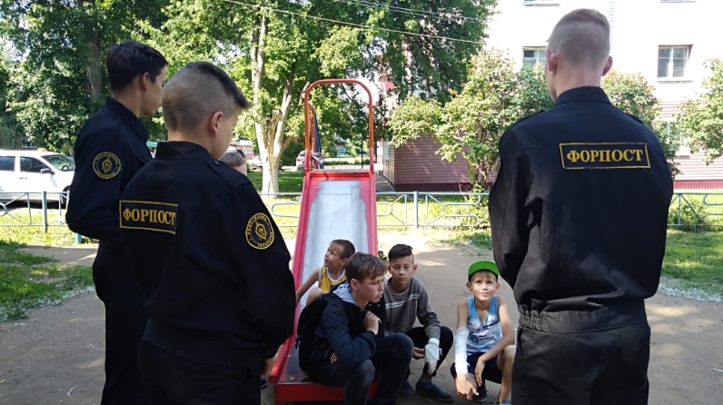 Форпостовцы прошли по всем детским и летним досуговым (дворовым) площадкам на момент обнаружения поломок, а также нахождения детей в постройках и заброшенных зданий микрорайона «Мельничная площадь». Проводили профилактические беседы с детьми и подростками, а также со взрослым населением на темы: «Правила перехода дороги», «Правила дорожного движения», «Нахождение несовершеннолетнего в ночное время», «Мои каникулы», «Правила поведения в природной среде».