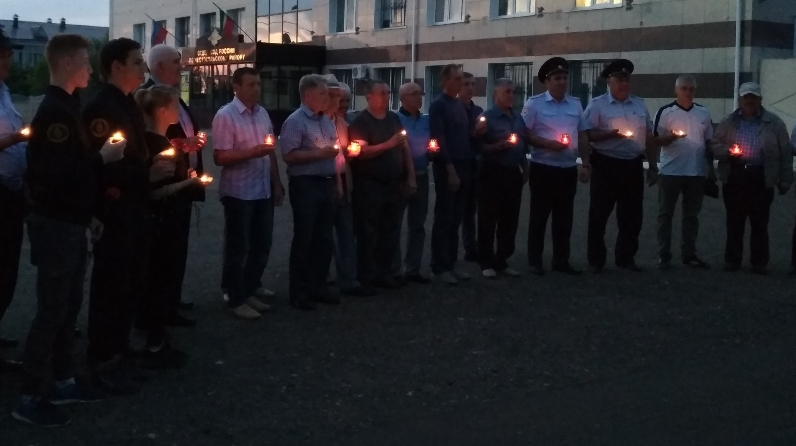По случаю 78-ой годовщины со Дня памяти и скорби в 21.00 ч. сотрудники отдела МВД России по Чистопольскому району, ветераны, члены Общественного совета и правоохранительной организации ФОРПОСТ собрались возле мемориала Памяти погибшим сотрудникам в годы Великой Отечественной войны, чтобы отдать дань уважение и благодарности всем ушедшим на фронт, выстоявшим и победившим.