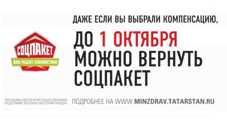 До 1 октября федеральным льготникам нужно принять важное решение: оставлять набор социальных услуг (так называемый соцпакет) или отказаться от него и получать деньги. При отказе от набора социальных услуг сумма денежной компенсации составляет 863 рубля 75 копеек.