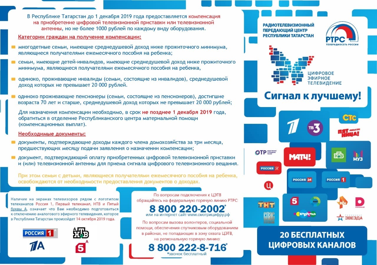 Напоминаем жителям Чистопольского муниципального района о переходе на цифровое ТВ с 14 октября 2019 года. До полного отключения аналогового телевещания осталось ровно 17 дней.