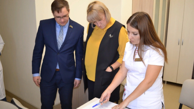 Сегодня, с целью ознакомления с деятельностью кабинета, а также с предложением поддержки в оснащении кабинета, новый кабинет Чистопольской ЦРБ посетили: депутат Госсовета РТ шестого созыва, директор ООО "ЭнергоСтройСервис", член фракции «Единая Россия» Халит Гарифуллин, исполняющий обязанности главы Чистопольского муниципального района, член фракции «Единая Россия» Константин Иванов и заместитель руководителя Исполнительного комитета Чистопольского муниципального района по социальным вопросам Галина Задворнова.