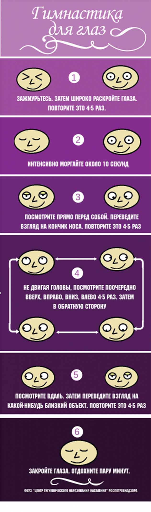 Правильные зрительные привычек у детей нужно формировать с 2-3 лет. Учите детей периодически моргать, не горбиться, не давайте им возможность смотреть пристально, просите чаще менять взгляд с ближнего на дальние предметы и обратно. Превратите эти упражнения из игры в привычку. Длительный просмотр телевизора, занятия на компьютере, планшете, мобильном телефоне оказывают неблагоприятное влияние на зрение.