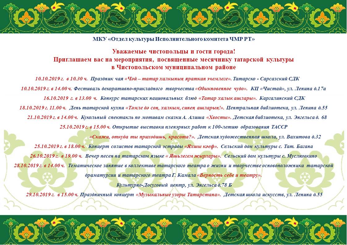 Октябрь в Чистопольском муниципальном районе объявлен месяцем татарской культуры