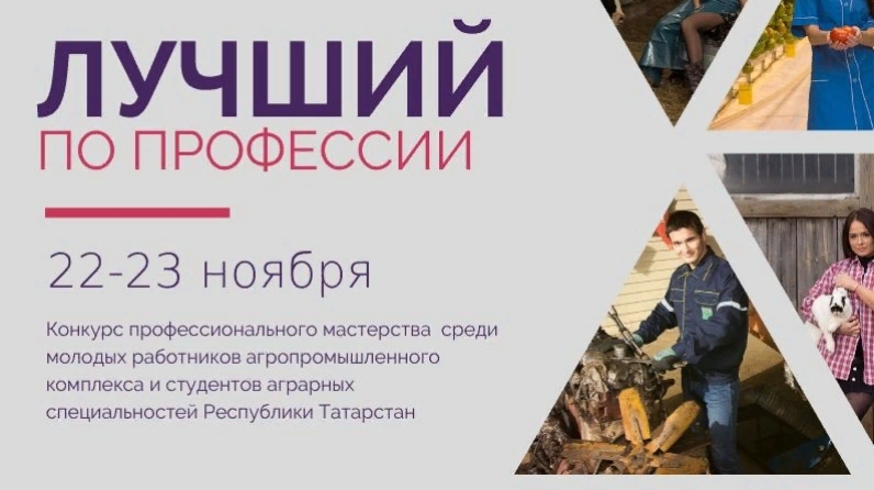 С 22 по 23 ноября в рамках реализации подпрограммы «Сельская молодежь Республики Татарстан на 2014-2020 годы» пройдет конкурс профессионального мастерства «Лучший по профессии» среди молодых работников агропромышленного комплекса Республики Татарстан. Организаторами конкурса выступают региональная общественная организация «Аграрное молодежное объединение Республики Татарстан», Министерство сельского хозяйства и продовольствия Республики Татарстан и Министерство по делам молодёжи Республики Татарстан.