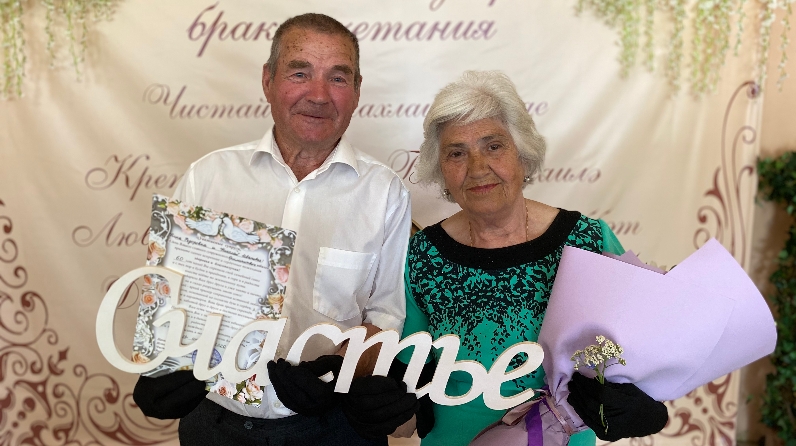 Вручив супругам памятные подарки, специалисты отдела ЗАГС пожелали им долголетия и благополучия.