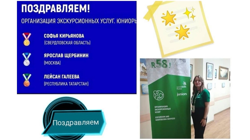 В числе призёров финальных соревнований VIII Национального чемпионата «Молодые профессионалы» (WorldSkills Russia) по компетенции R58 «Организация экскурсионных услуг», проходивших