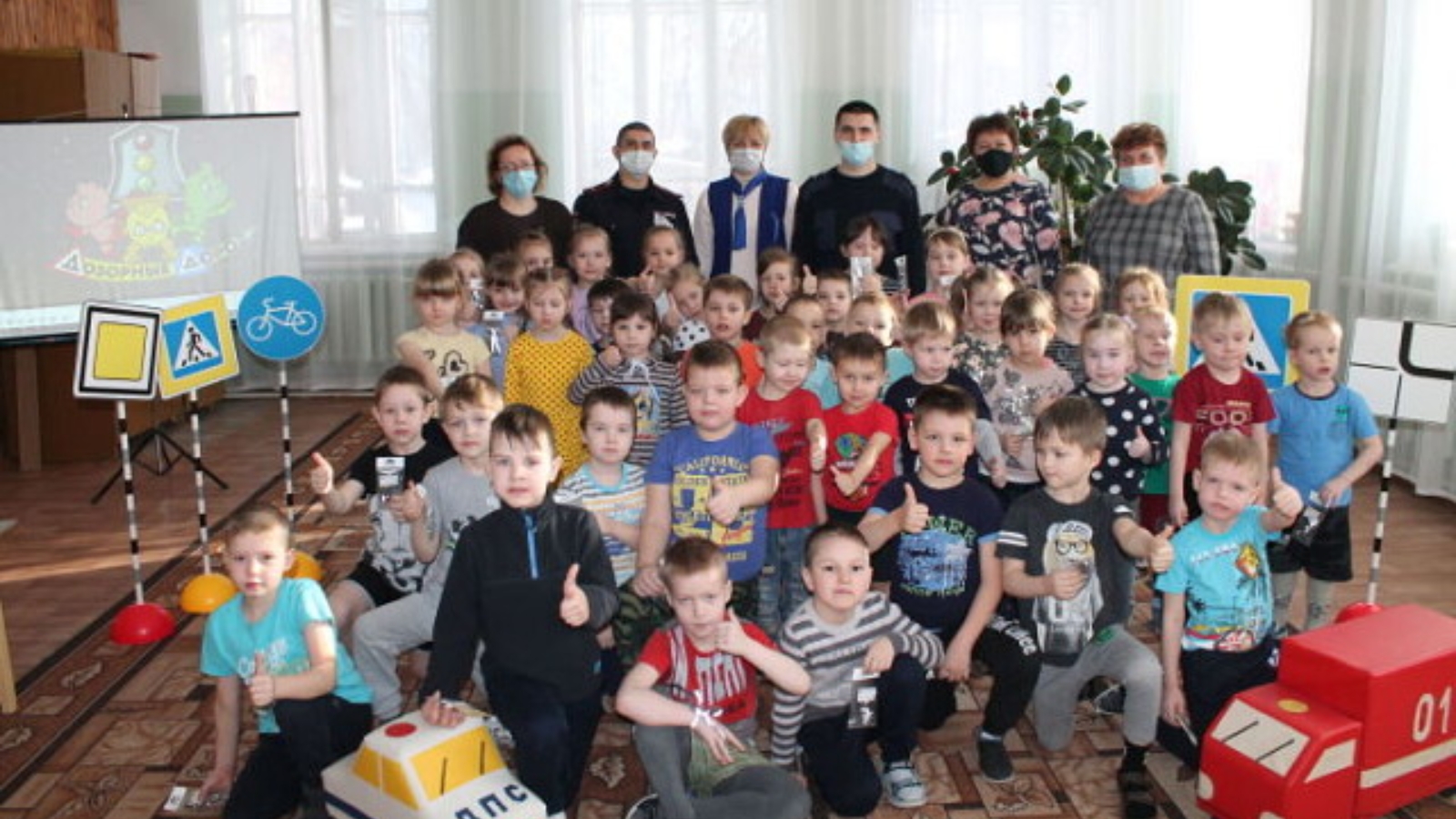 - Хочется отметить, что в этом детском саду работа по обучению малышей правилам дорожного движения поставлена на хороший уровень, благодарим за это педагогический коллектив. Ребята знают правила поведения на дороге, легко находят нарушителей ПДД и объясняют их ошибки, - отметил командир 2 взвода 3 роты отдельного специализированного батальона ДПС республиканской ГИБДД Владимир Тимофеев.