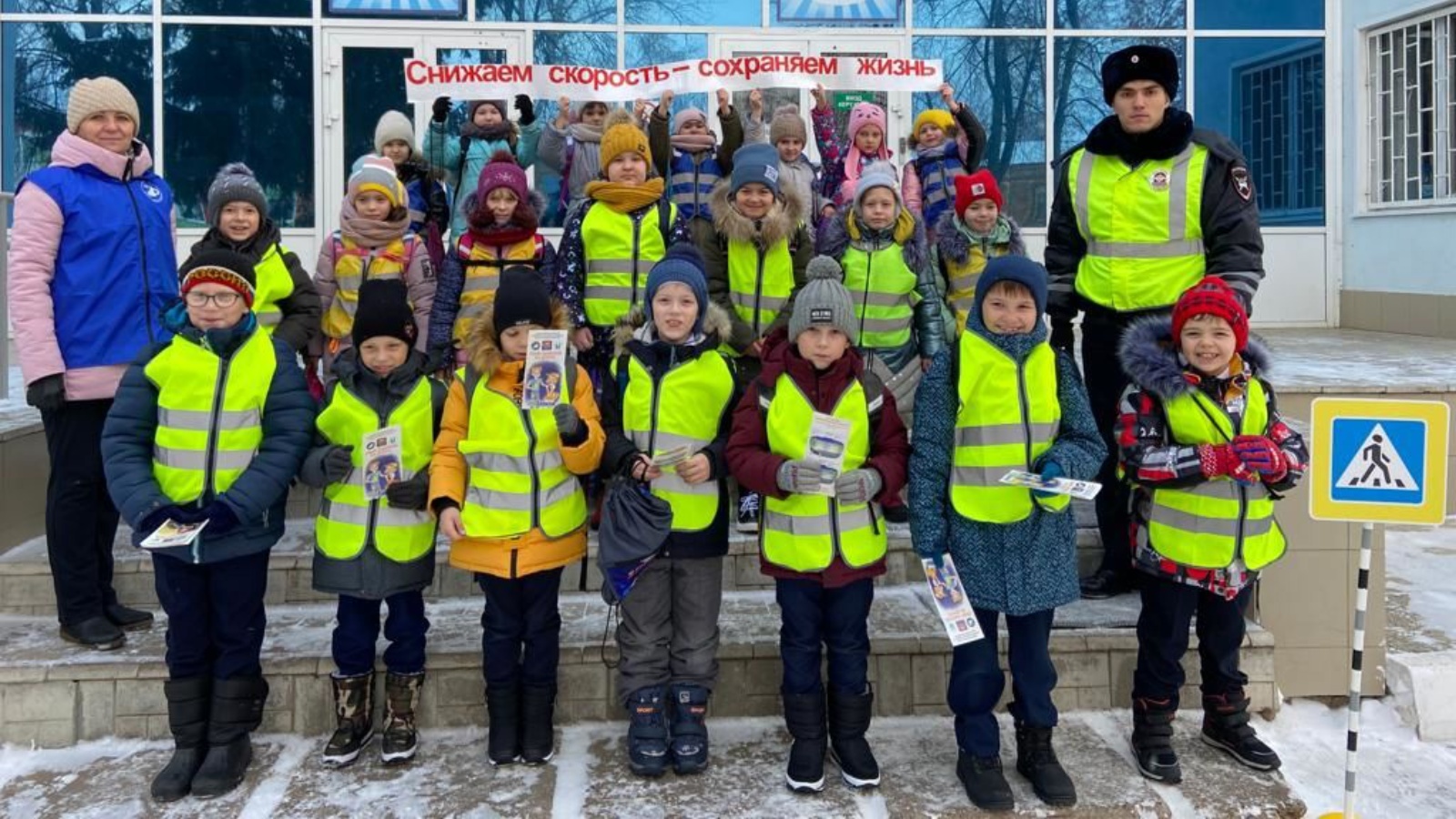 Ребята подготовили для водителей плакат с призывом «Снижаем скорость – сохраняем жизнь», а пешеходам вручали буклеты «Стань заметней на дороге» и рассказывали им о необходимости ношения световозвращающих элементов на одежде в темное время суток.