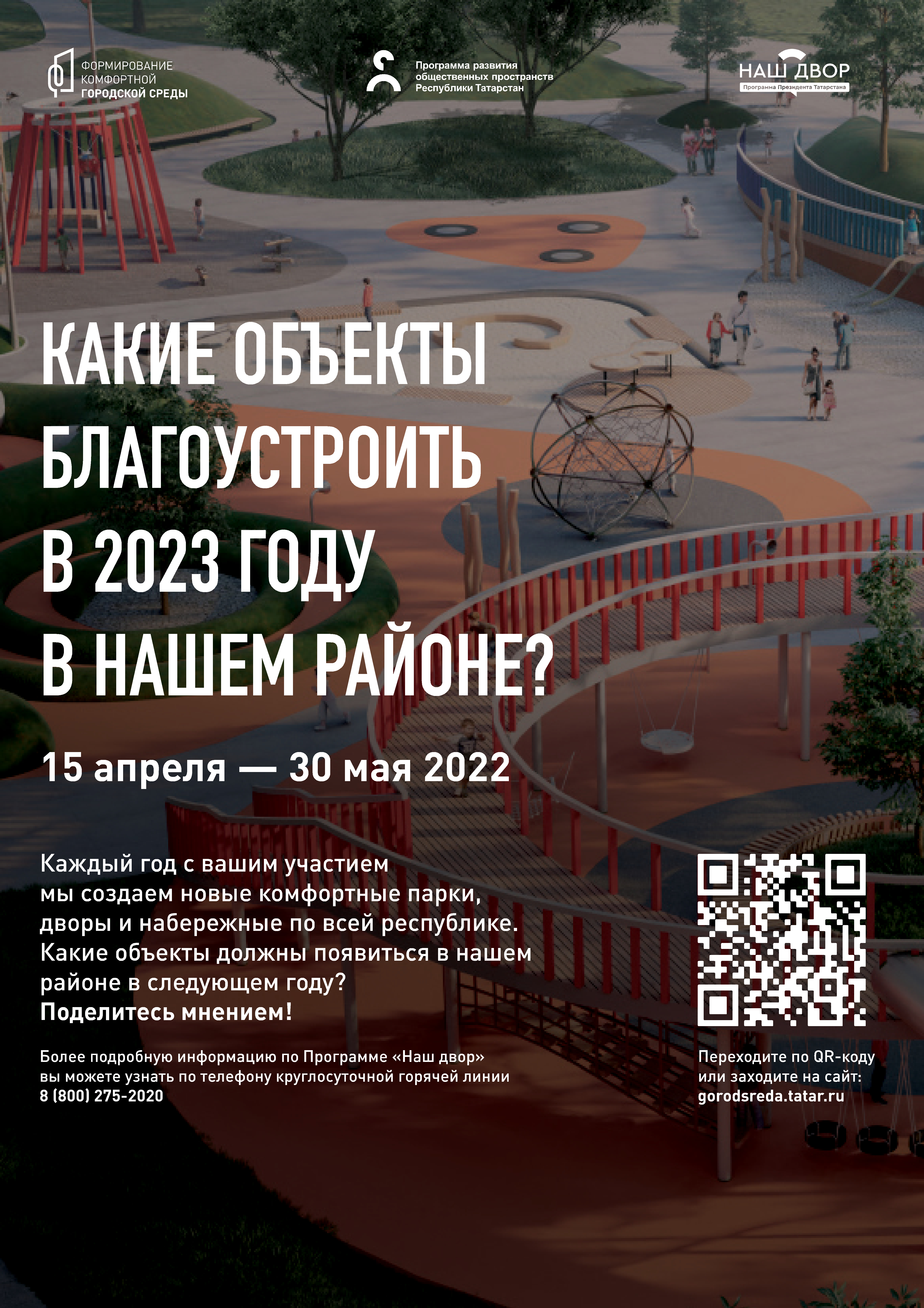 Для Республики Татарстан Минстроем России согласовано проведение рейтингового голосования по выбору общественных пространств, планируемых к благоустройству в 2023 году на Портале государственных и муниципальных услуг Республики Татарстан через сервис «Опросы жителей» и в мобильном приложении «Услуги РТ».