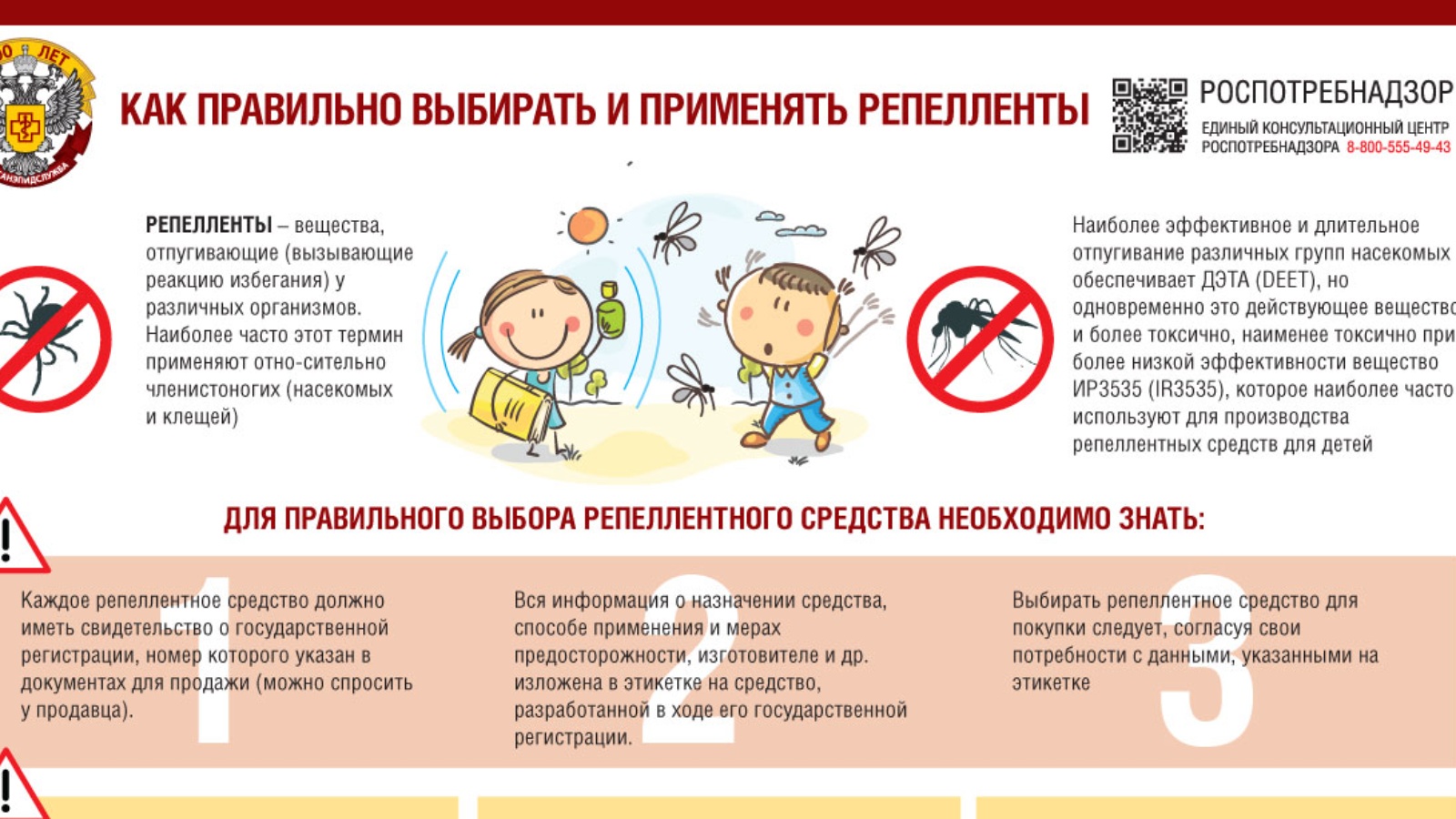 Роспотребнадзор напоминает, что насекомые (комары, мухи) и клещи могут переносить при укусах возбудителей опасных заболеваний. В связи с этим Роспотребнадзор напоминает о средствах защиты от различного рода насекомых – репеллентах.