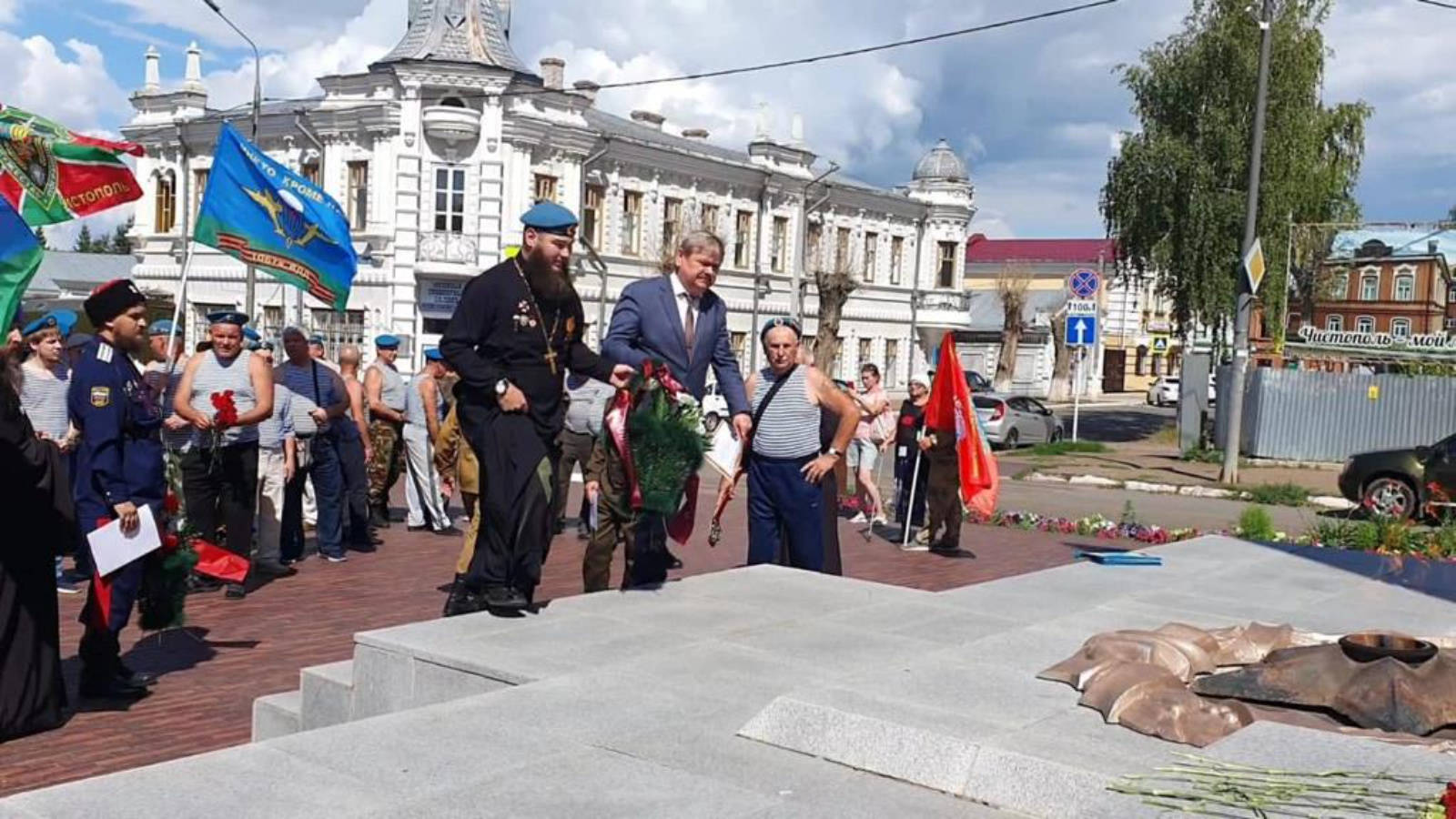 Мероприятие началось с молебна в храме на водниках. Затем около храма прошел час мужества. С торжественной речью выступили представители епархии, Боевого, Морского, Пограничного братств, десантники, участники СВО.