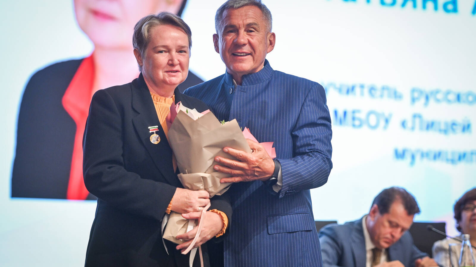 Раис РТ Рустам Минниханов присвоил учителю русского языка и литературы лицея №1 Татьяне Семёновой почётное звание «Заслуженный учитель Республики Татарстан».