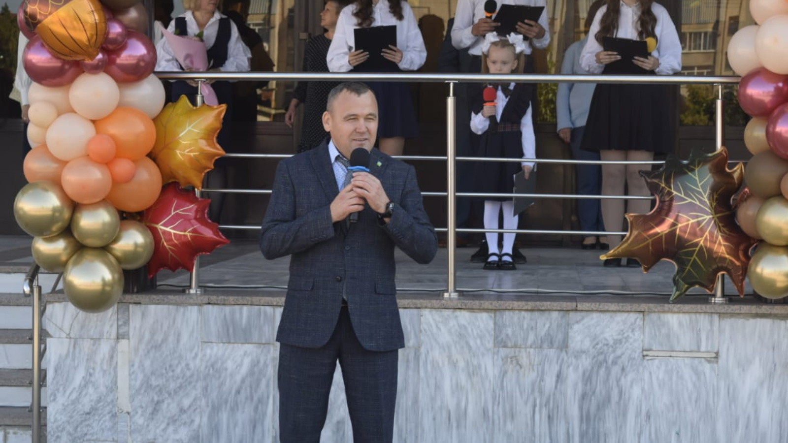 Поздравляя всех собравшихся, Эдуард Рустамович, поздравил с Днем знаний пожелал усидчивости за партой и внимания на уроках, веселого настроения и звонкого смеха на переменах, чудесных идей и увлекательных занятий, высоких отметок и достойных побед!