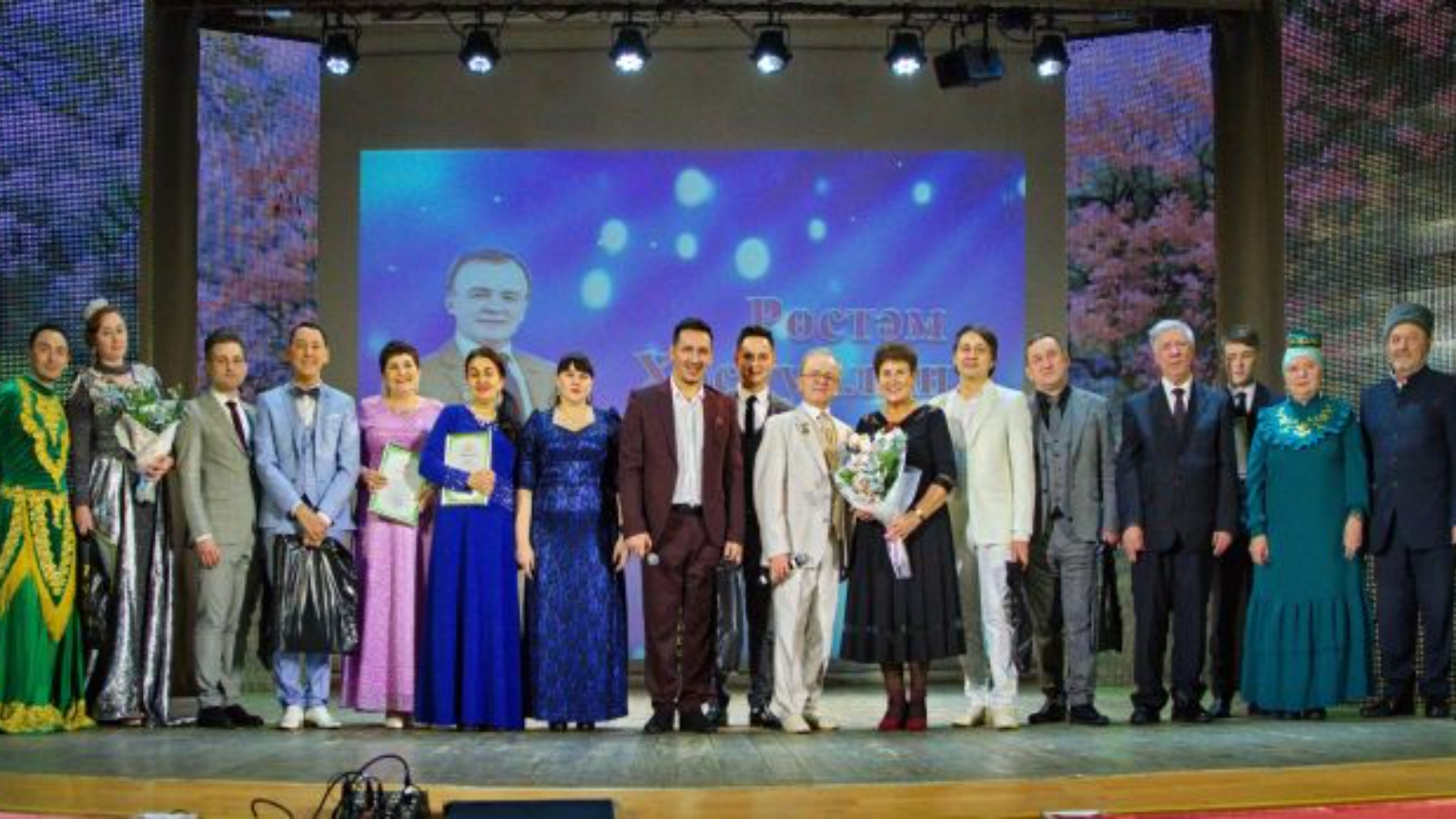 Поздравляя виновника торжества, приглашенные артисты один за другим радовали всех своими песнями. Приехавший из Москвы Ильдар Идиятуллин, автор-исполнитель из Азнакаево Булат Зиганшин, ведущий радио «Күңел» Марсель Мусабиров, уроженец Рыбной Слободы Роберт Шаймарданов, житель Альметьевска Хамид Маткаримов, Рустам Гилфанов из Муслюмовского района, нурлатский певец Рустам Насибуллин также подарили чистопольскому зрителю свои замечательные песни. Они сопровождались красивыми поздравлениями.