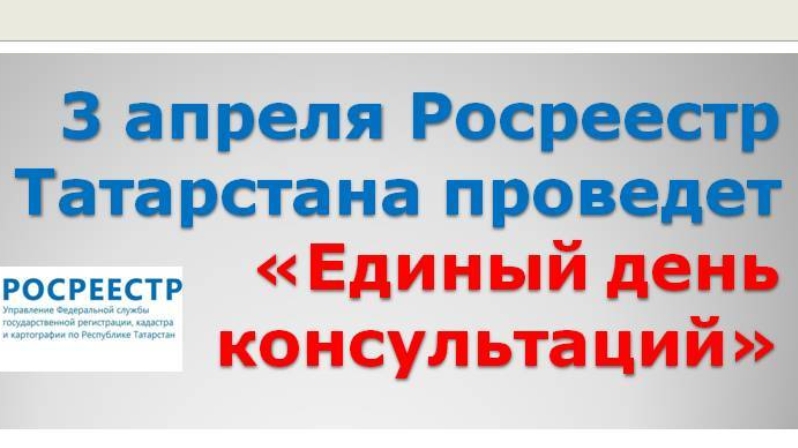 3нче апрельдә Татарстан Росреестры Бердәм консультацияләр көне үткәрә. Әлеге чара Росреестрның Татарстан Республикасы буенча идарәсе оешуга 10 ел тулуга багышланган.