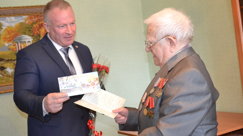 Ул ветеранны якынлашып килүче изге бәйрәм – Бөек Җиңүнең 74 еллыгы белән котлады, аңа, шул исәптән Татарстан Республикасы Президенты Рөстәм Нургали улы Миңнехановтан да бүләк тапшырды.