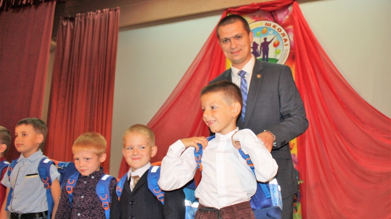 Яшь чистайлылар өчен балалар һәм яшьләр иҗат сарае фойесында тулы бер бәйрәм программасы оештырылган иде. Әкият персонажлары һәм мультфильм геройлары малайлар һәм кызларны җырларга, биергә һәм уйнарга чакырдылар. Туйганчы кәефләнеп, балалар актлар залына ашыктылар, портфельләр тапшыру тантанасы да шунда узды.