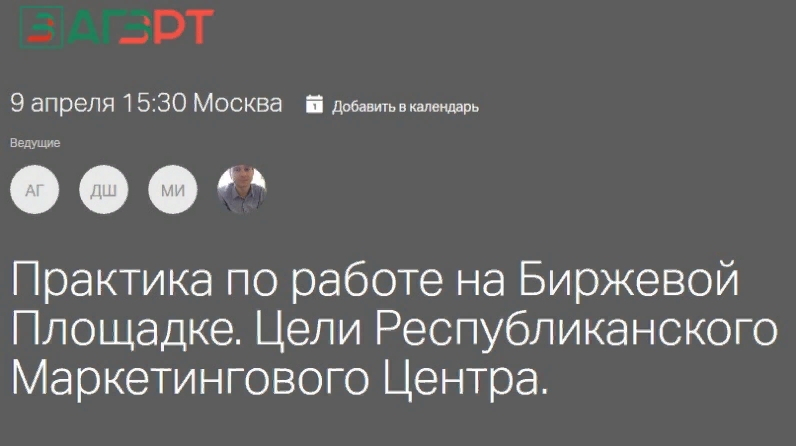 Киләсе вебинарны иртәгә (пәнҗешәмбе) башлана: 9 апрель 2020 - 15.30 дәвам итә: 1 сәгать. Трансляциядә «Биржа мәйданчыгы»агрегатының эшләве буенча кызыксындырган барлык сорауларны бирергә мөмкин булачак. Катнашу бушлай.
