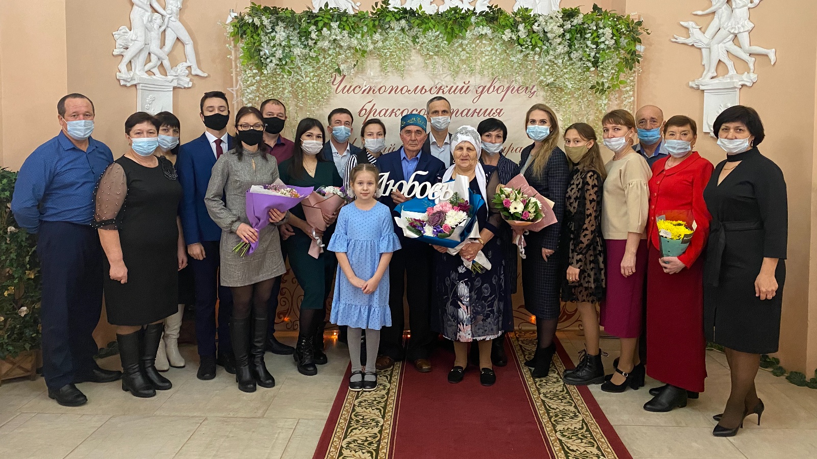 Нәкъ 50 ел элек алар гаилә берлеген ныгытып, шатлыкта да кайгыда да «кулга кул тотынып " тормыш юлыннан баралар. Алмаз Морат улы һәм Рәмзия Габделхак кызы өч бала тәрбияләп үстергәннәр, алты онык тәрбияләүдә катнашалар. Чистай Никахлашу сарае традициясе буенча, ирле-хатынлы итеп игълан ителгән минутларны искә төшерделәр. Юбилярлар өчен тагын Мендельсон маршы яңгырады. Алар юбилярлар истәлекле китабына кул куйдылар.