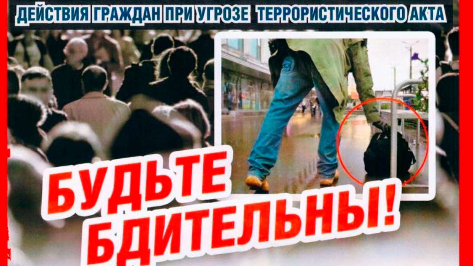 Террорлык актына алдан әзерләнергә мөмкин түгел, шуңа күрә һәрчак сак булырга кирәк.