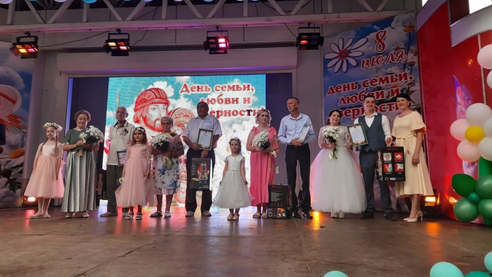 Бәйрәм хөрмәтенә сәхнәдә күп еллар никахта яшәгән гаиләләрне хөрмәтләделәр. "Мәхәббәт һәм тугрылык өчен" медален Ермолаевларга тапшырдылар.