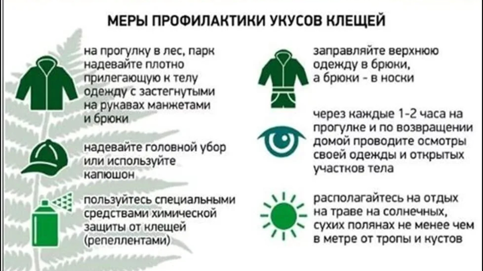 Өлкән яшьтәге балалар өчен куркыныч зоналарда үз-үзеңне тотуның төп кагыйдәләрен аңлатырга кирәк. Шулай ук киемнәрне этикеткадагы инструкцияләр нигезендә акарицид чаралары белән эшкәртү мөһим. Оптималь доза белән генә чикләнегез: киемнәрне «символик рәвештә» эшкәртергә ярамый, әмма чараны артык куллану да файда китермәячәк.
