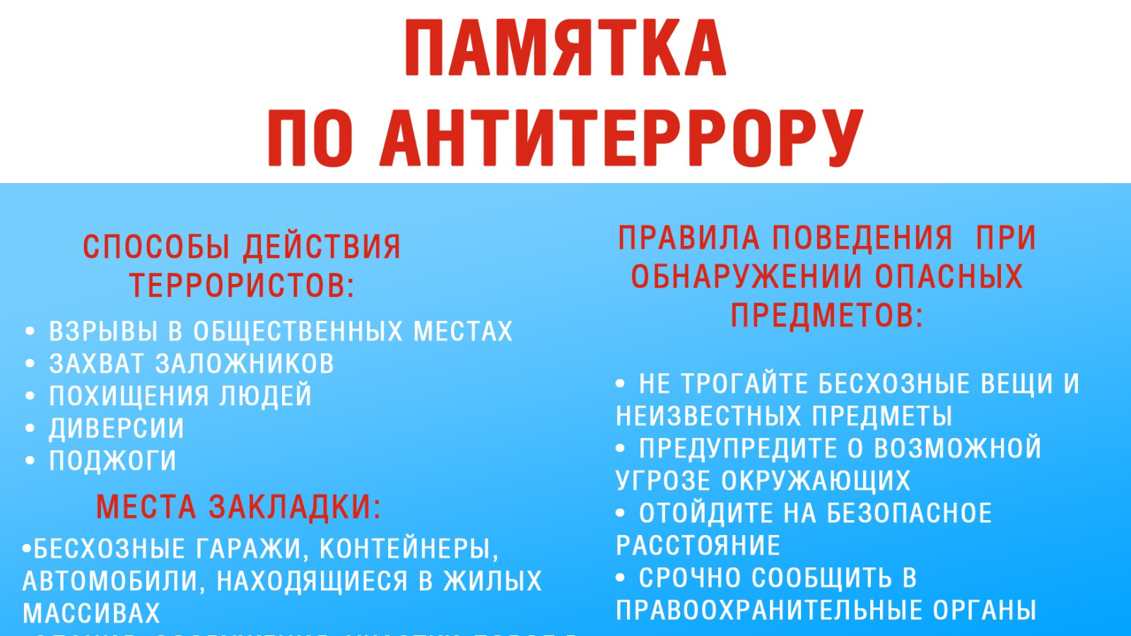 Хәзерге вакытта террорчылык дөньяда иминлеккә һәм тотрыклылыкка иң куркыныч янауларның берсе булып тора. Бүген террорчыларның корбаннары беренче чиратта тыныч кешеләр булып чыга. Еш кына алар теракт куркынычы яки террорчылык һөҗүме вакытында үзләрен ничек тотарга икәнен белмиләр.