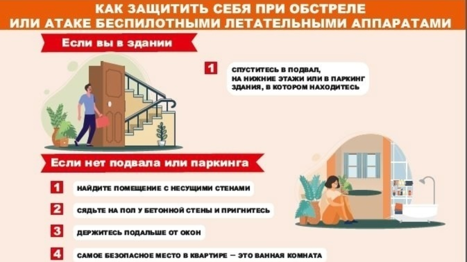 Россия гадәттән тыш хәлләр министрлыгы пилотсыз очу аппаратлары белән ату яки атака вакытында үзеңне ничек якларга кирәклеге турында белешмәлек эшләде.